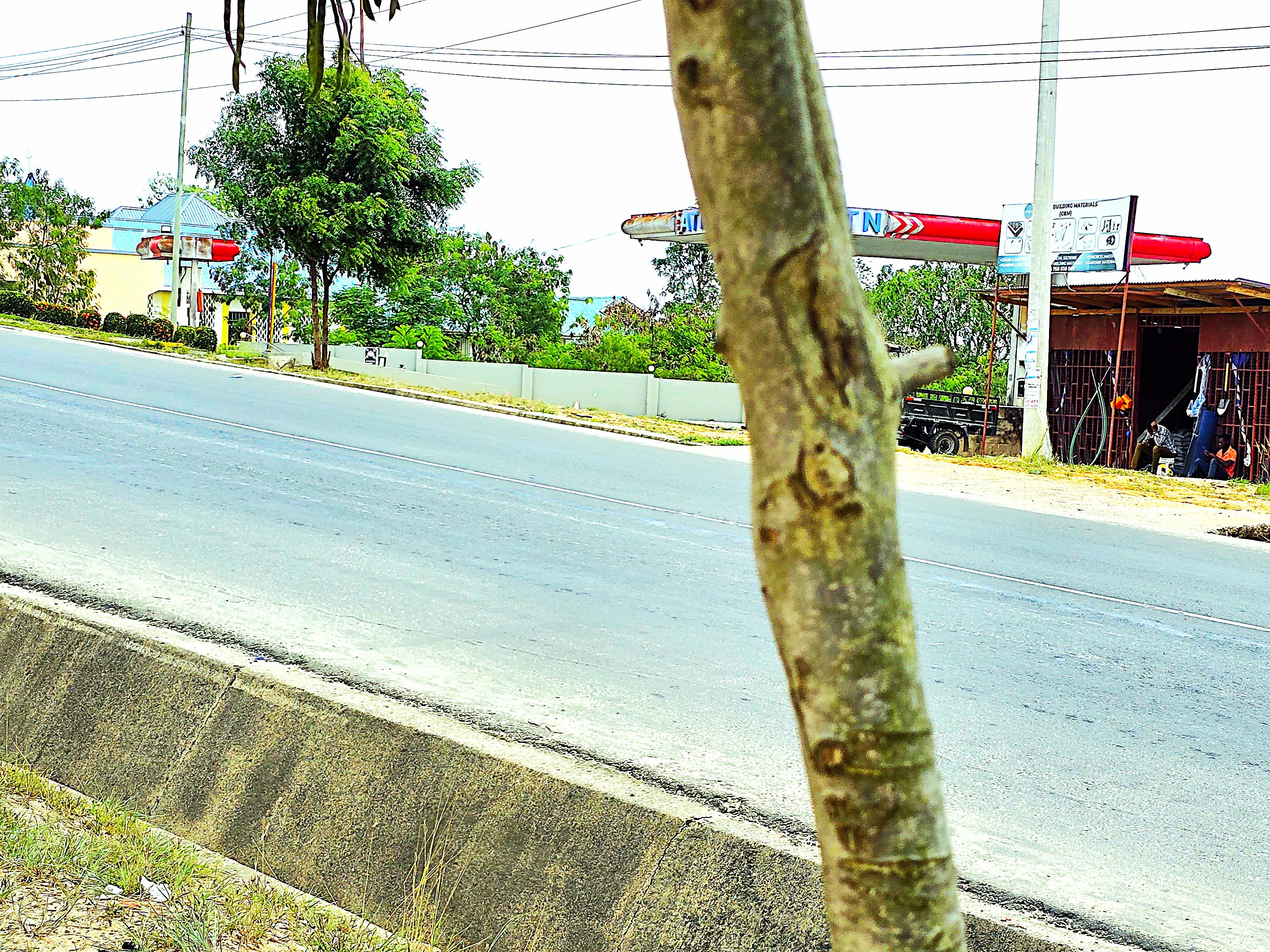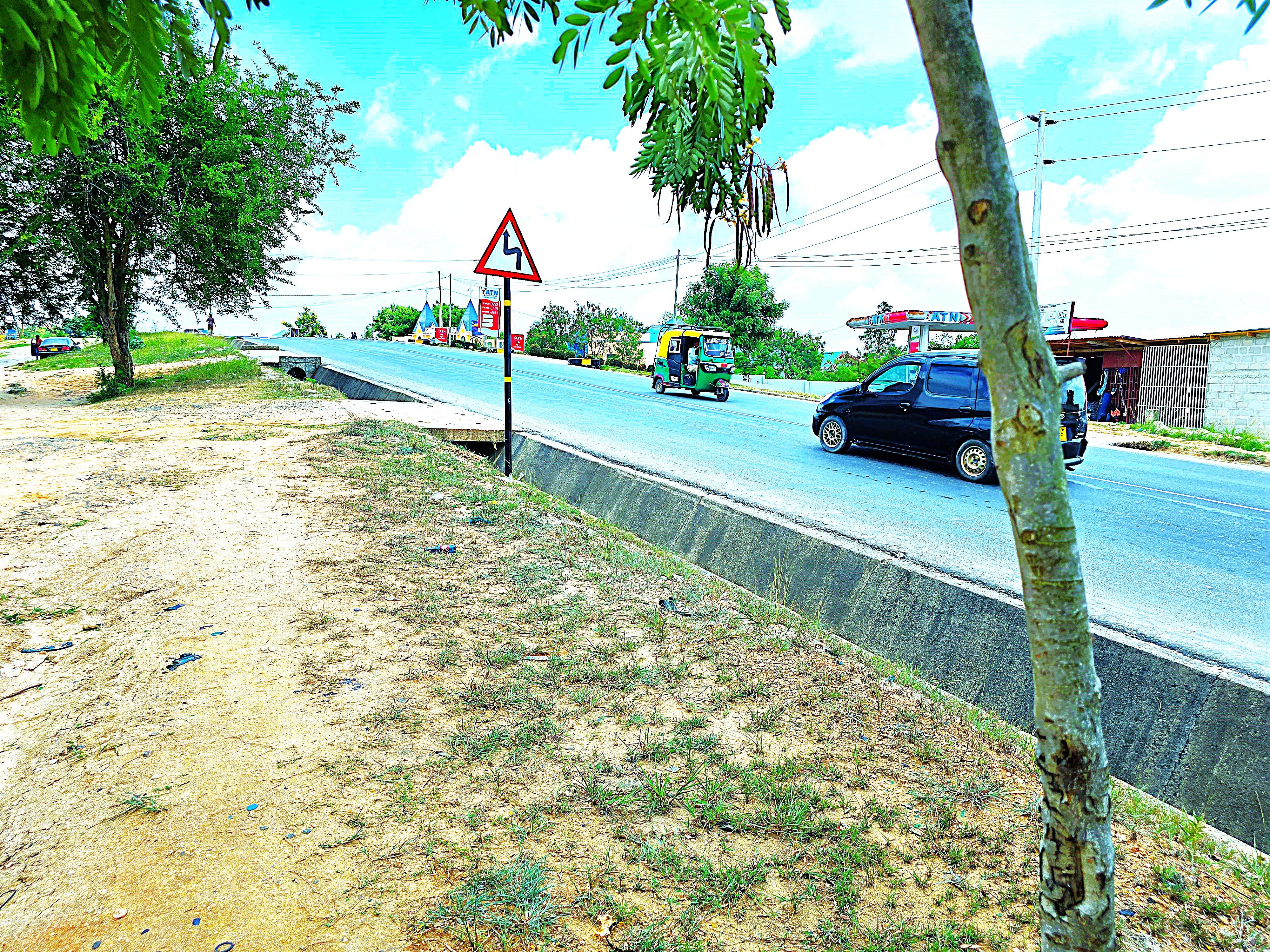 It is adjacent to the tarmac road.