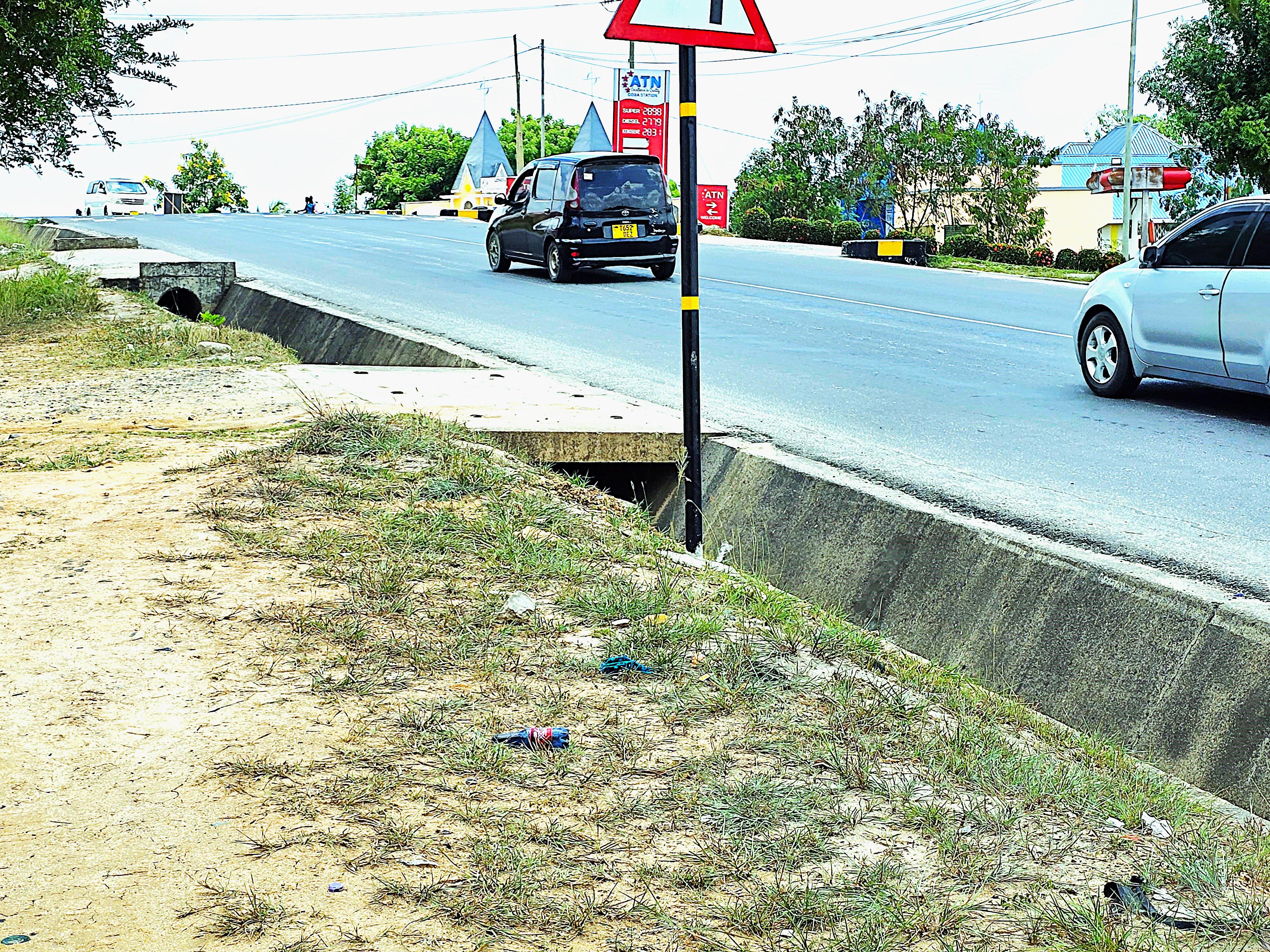 It is adjacent to the tarmac road.